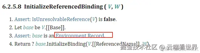 注意一下, 有ToObject的操作,然后用baseObj.[[Get]]去取值。 - 否则从环境记录里面去取值, 环境记录可以