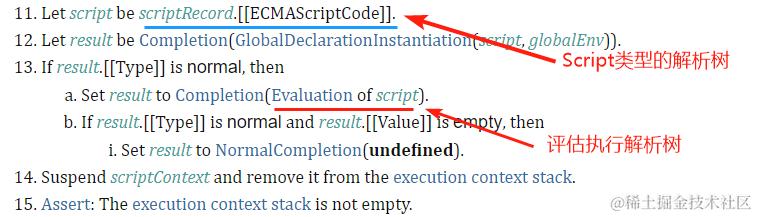 Evaluation of script简简单单几个字,其后面非常复杂,就是对整个树进行解析,遇到可以执行的代码就进行调用,然后函数嵌套函数,懂的都懂,新的上下文,新的环境记录统统走起,...............。