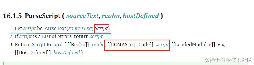 Script Record 脚本记录 之前提过,是源代码被 ParseScript ( sourceText, realm, hostDefined ) 初步解析后的数据结构。
