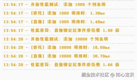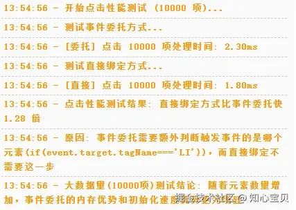 | 点击性能测试 | ⚠️ 稍慢(需要判断目标元素) | ✅ 稍快(直接绑定到目标元素) |