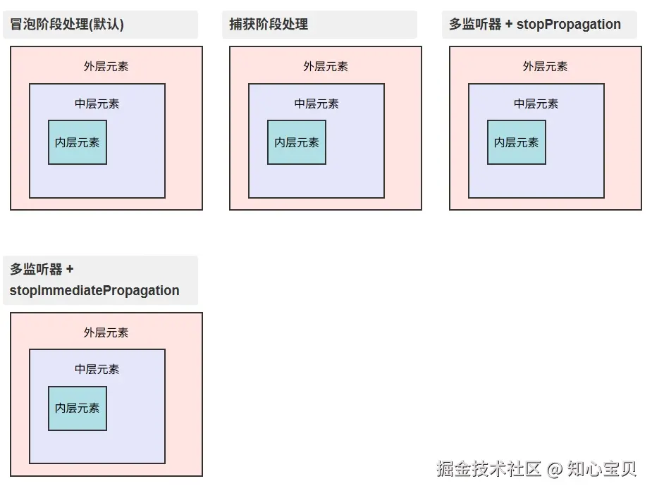 - 事件捕获是从最外层的元素开始,逐步向内传播到目标元素。例如:从