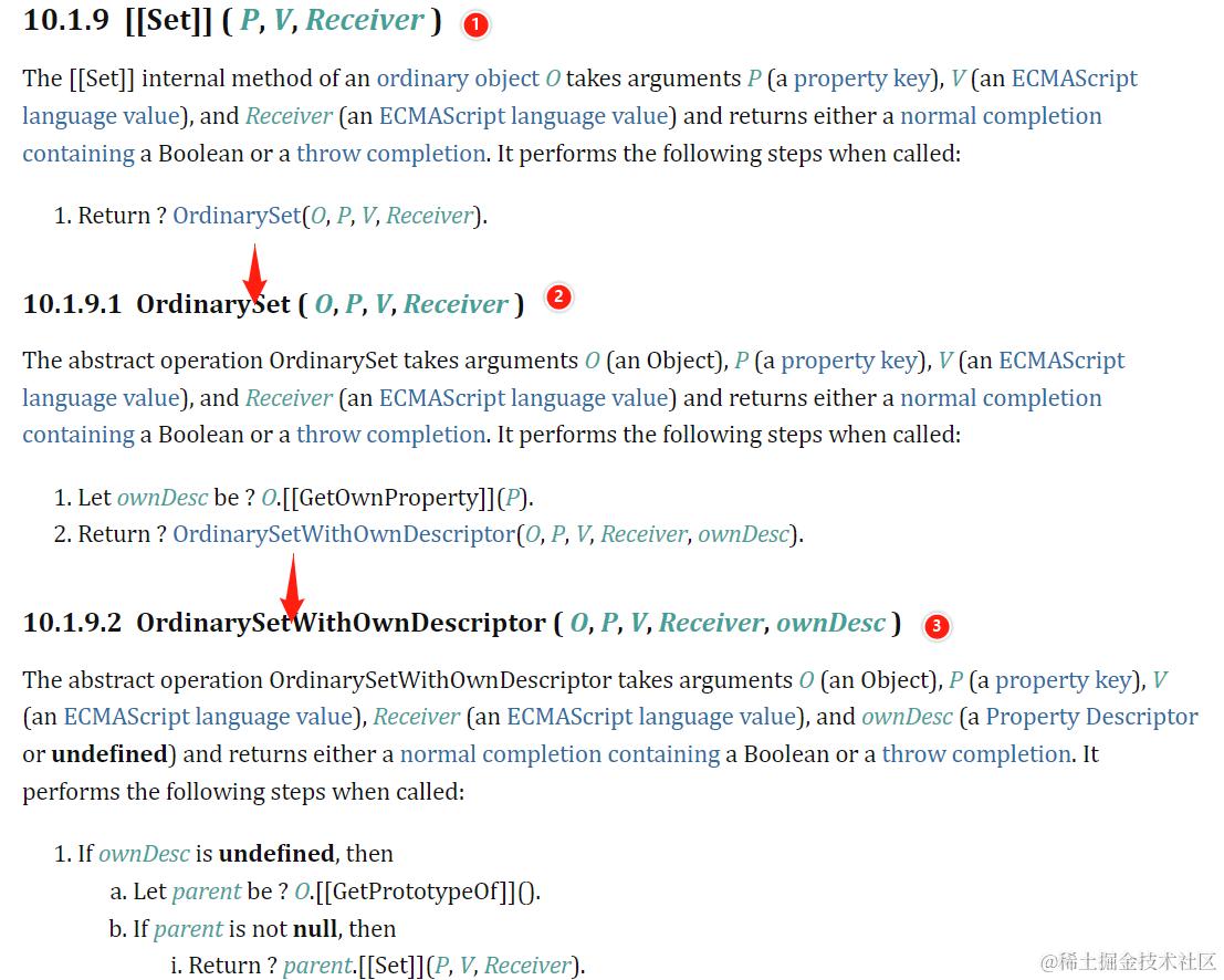 - 执行 O.[[Set]](P, V, O),所以下面的 Receiver 刚开始就是对象 O