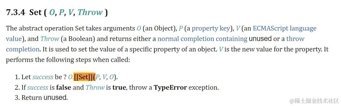 - 调用 OrdinarySet ( O, P, V, Receiver )
