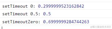真的想更快在下一次时间循环的执行,到底是设置0,还是0.5 , 还是1呢? 依旧测试一段代码:
