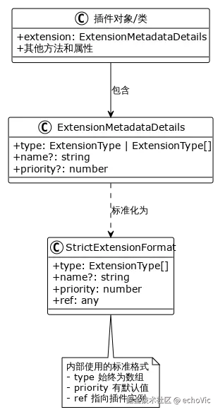 extension属性定义元数据,类本身是插件实现。 - 仅元数据: 只提供