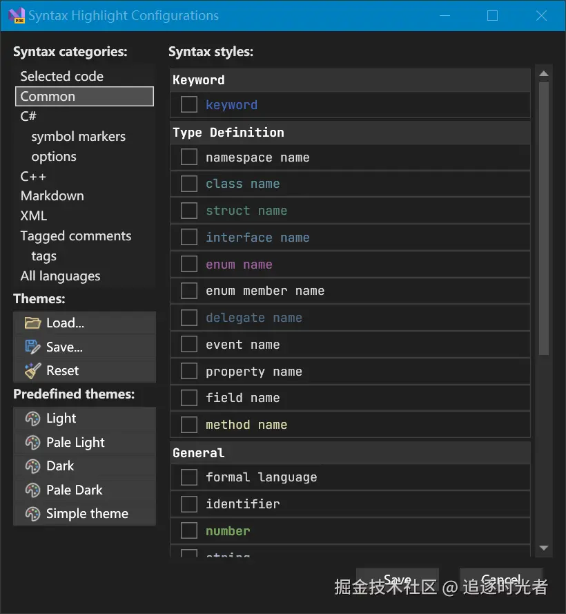 基于默认 VS Code 主题的主题包,使用主题转换器创建。这些主题与 Visual Studio 2022 Preview 4 及更高版本最兼容(支持的主题包括:Abyss、Dark+、Kimbie Dark、Light+、Monokai、Monokai Dimmed、Quiet Light、Red、Solarized Dark、Solarized Light、Tomorrow Night Blue)。