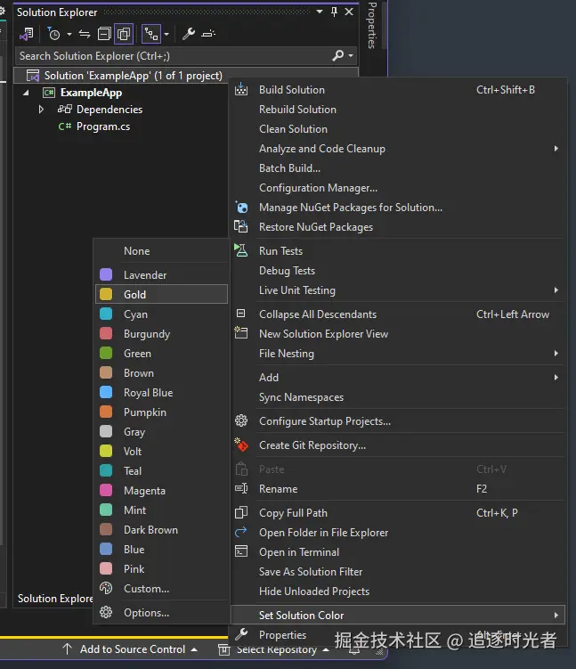 Solution Colors允许将颜色与解决方案关联起来,并在 Visual Studio 的不同位置显示。灵感来自 VS Code 的 Peacock 扩展。