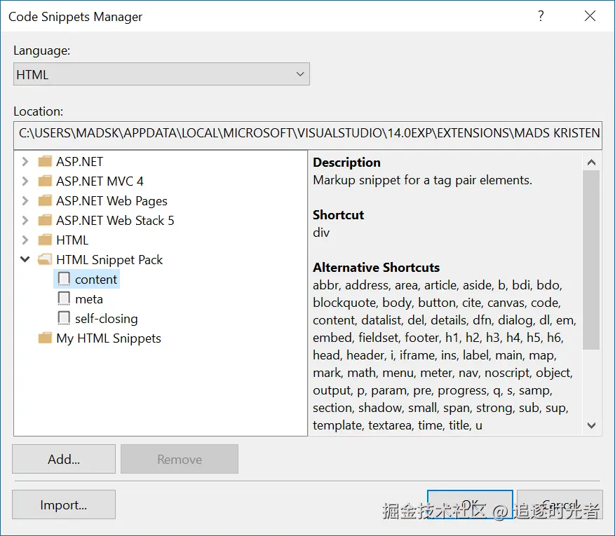 它提供了一组预定义的 HTML 代码段(snippets),以帮助开发者更快速地编写 HTML 代码。这些代码段是预先定义的代码模板,可以通过简单的代码缩写触发,然后自动生成相应的 HTML 代码块,从而提高编写 HTML 的效率和准确性。