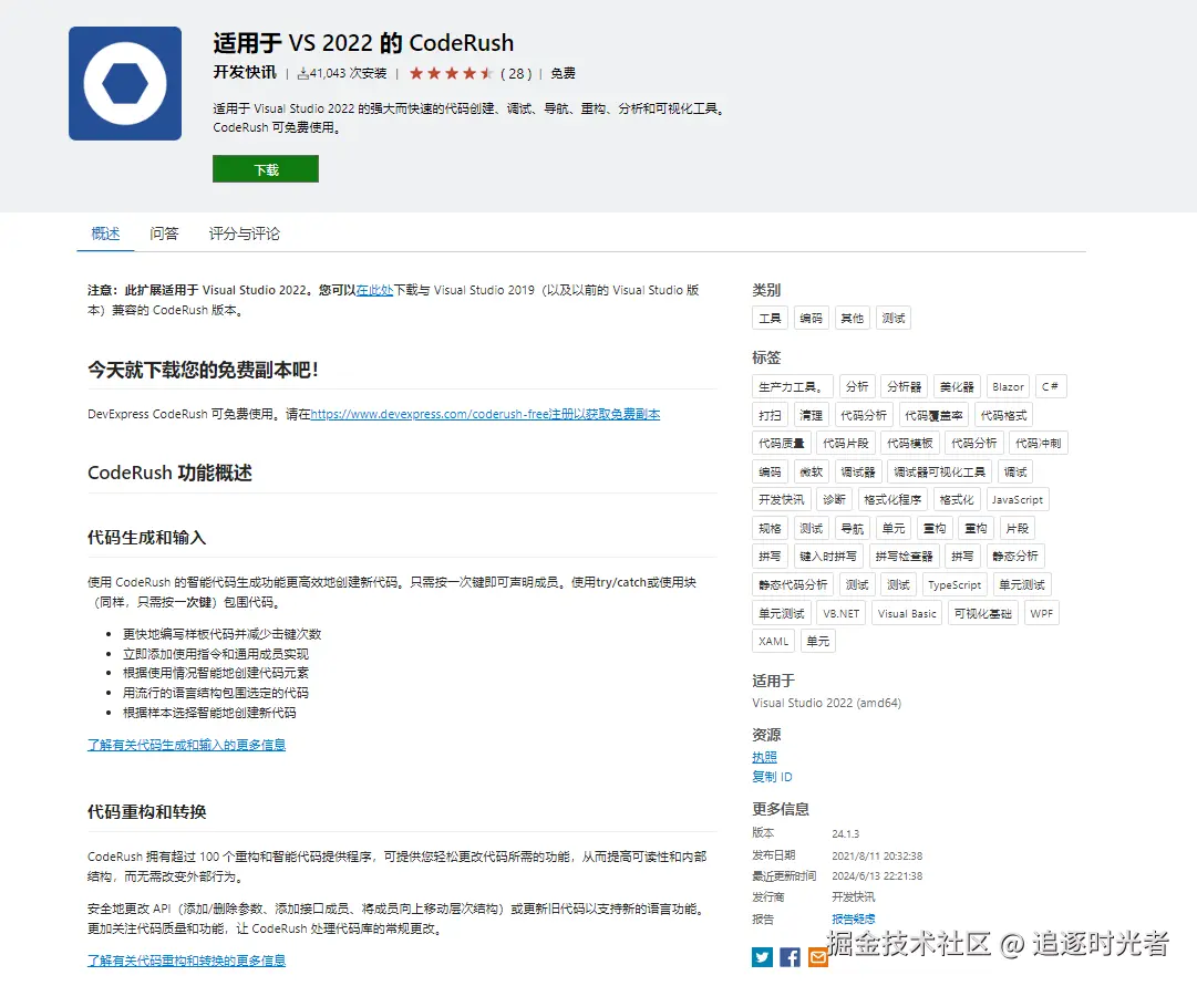 CodeRush是用于Visual Studio 2022的功能强大且快速的代码创建、调试、导航、重构、分析和可视化工具(一个完全免费的能和ReSharper匹敌插件)。