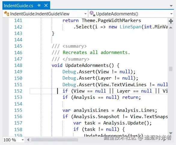 显示代码缩进线,有助于保持代码的结构清晰。页宽标记有三种样式:实线、点线面和虚线,有粗细之分,颜色也可自定义。默认为灰色虚线,如图所示。每个缩进级别可以有不同的样式和颜色。