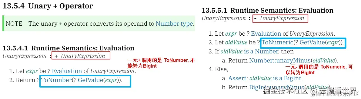 +调用的是 ToNumber ( argument ) , 转为数字Number - 一元