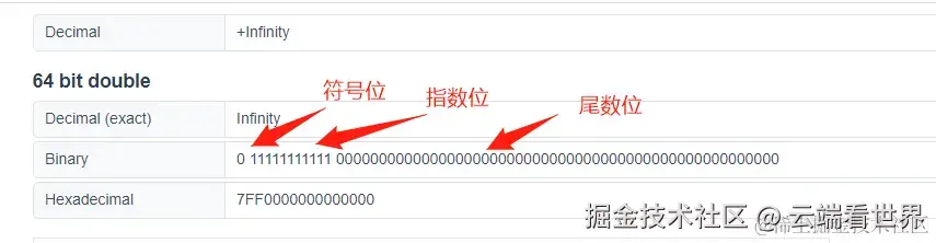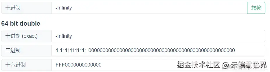 +Infinity(正无穷), - 若符号位是1,则表示
