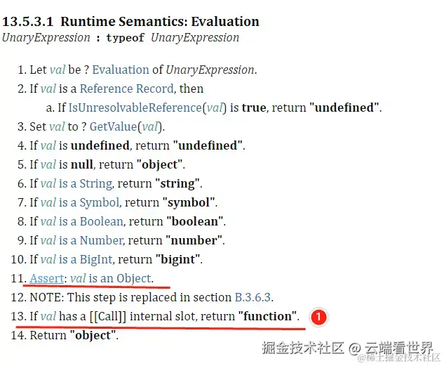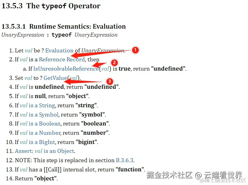 看ECMAScript 13.5.3 The typeof Operator,截个图,方便看