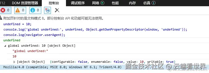 到此为止,就解释了typeof未申请变量时,返回值 undefined。