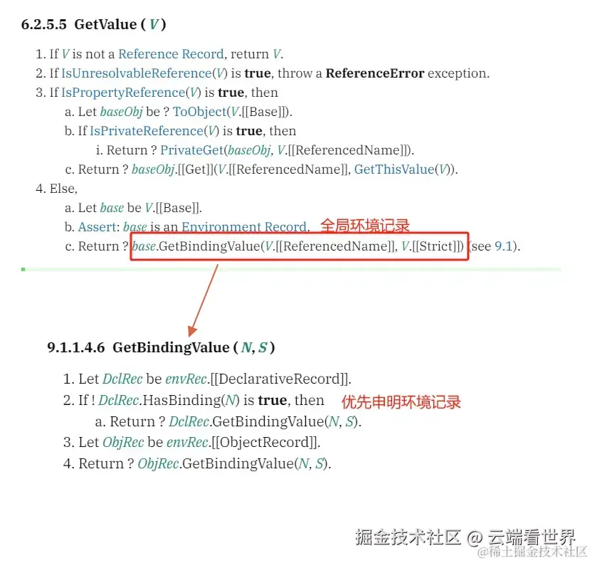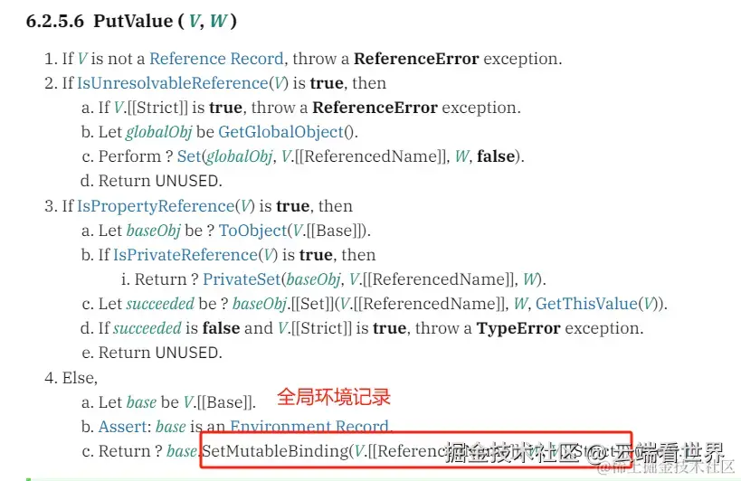 此时的lref,即V 是引用记录,而且从上面得知 [[Base]]是全局环境记录,所有走的流程是最后红色标记的 Else部分逻辑。