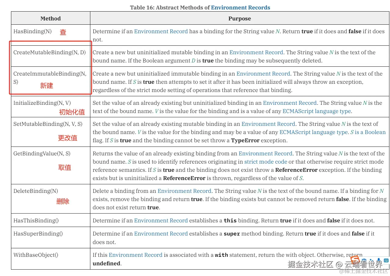 - 实例化 CreateMutableBinding(N, D) , CreateImmutableBinding(N, S)