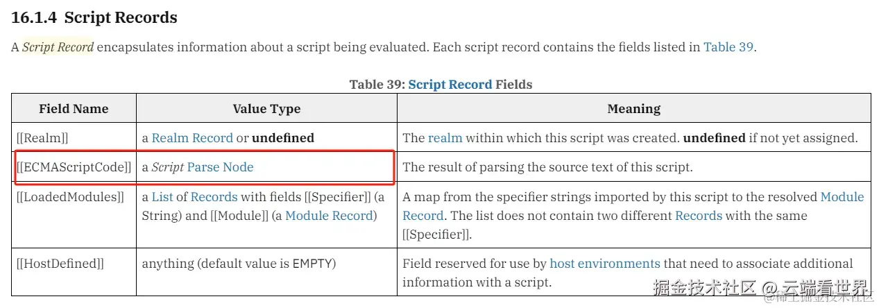 | Module Environment Record | 模块环境记录。模块初始化时创建。 | 绑定模块顶层代码的标识符 |