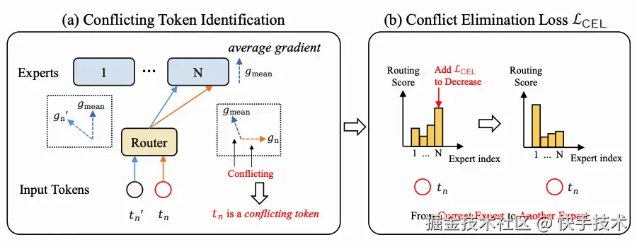 为解决该问题,本文提出基于 token 级梯度分析的 token 梯度冲突消解方法 STGC。具体而言,我们首先通过 token 级梯度识别专家内的冲突 token,随后设计定制化正则损失,促使冲突 token 从当前专家路由至其他专家,从而降低专家内 token 间的干扰。该方法可作为即插即用模块适配多种 LVLM 方法,大量实验结果验证了其有效性。
