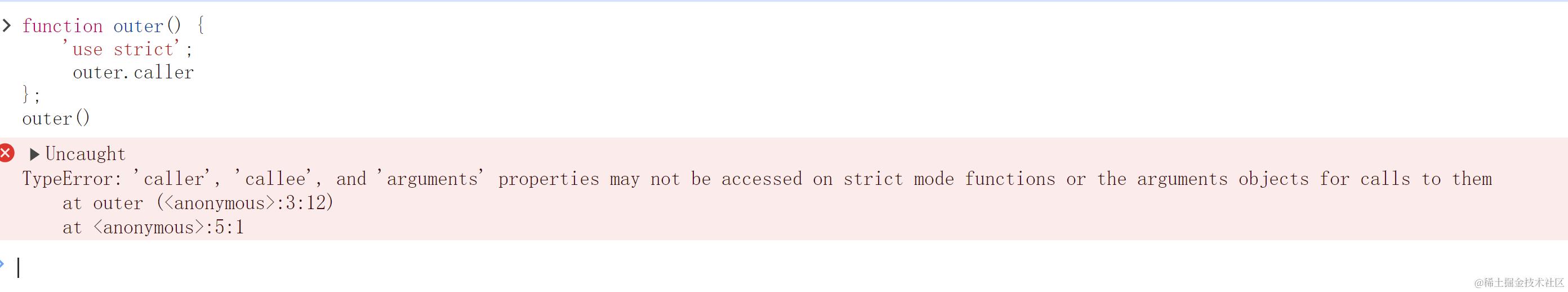- caller属性: 它通常用于引用调用当前函数的函数。但在严格模式下,访问或修改caller属性会抛出错误,以防止潜在的信息泄露和不安全的函数引用操作。