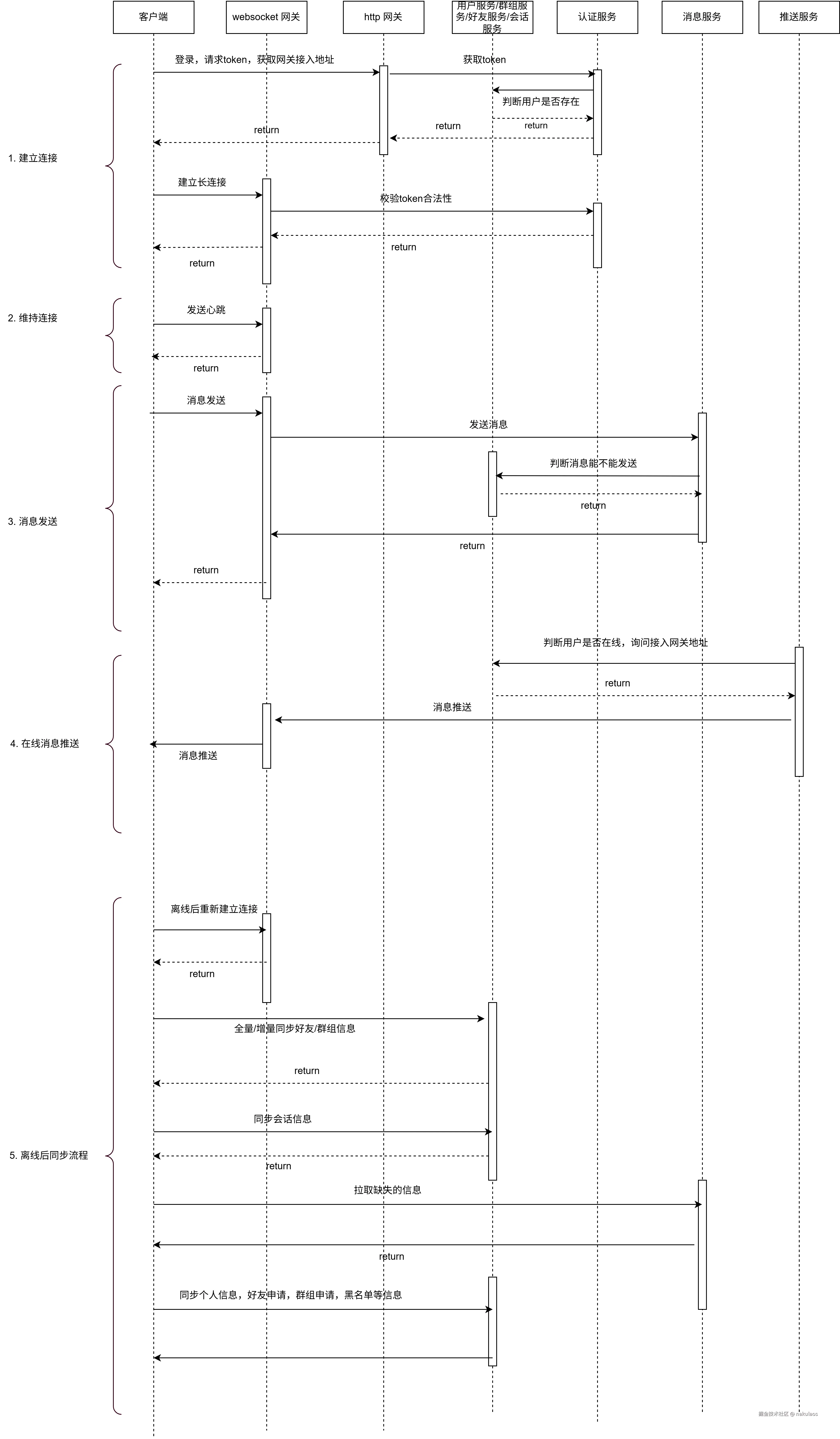 - 基础数据管理:包括用户信息管理、好友关系维护以及群组数据的增删改查。这部分相对是比较常规的,主要围绕数据库表的 CRUD 操作。