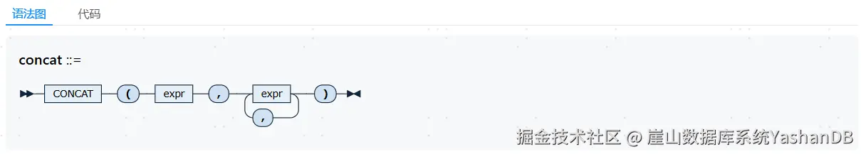 CONCAT函数将多个expr的值连接成一个字符串,expr的个数最少为2个,最多为65535个。