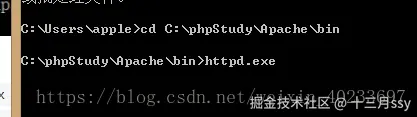 然后通过phpStudy打开apache文件所在位置进入bin文件夹。运行cmd进入bin文件夹,如图: