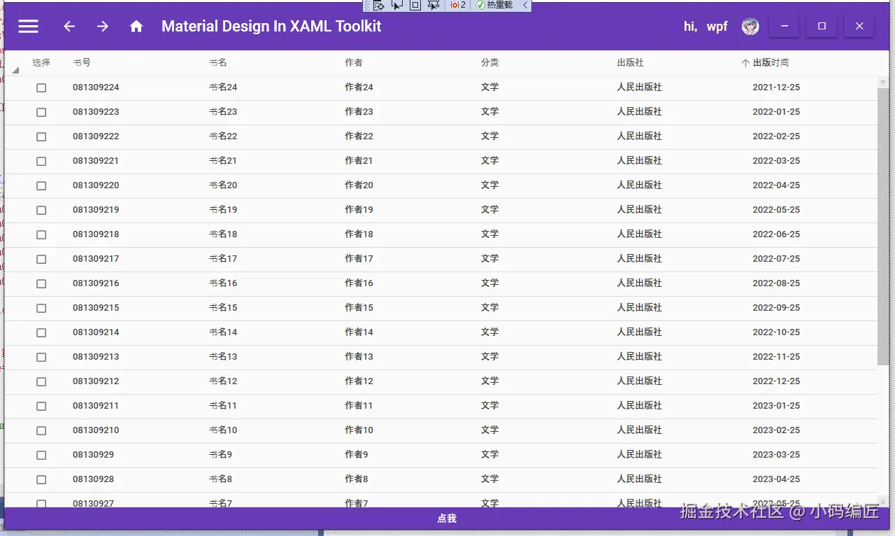 通过本文的介绍,我们成功实现了使用 WPF、MaterialDesign、Prism 8 和 DataGrid 来展示带有分页功能的表格数据。