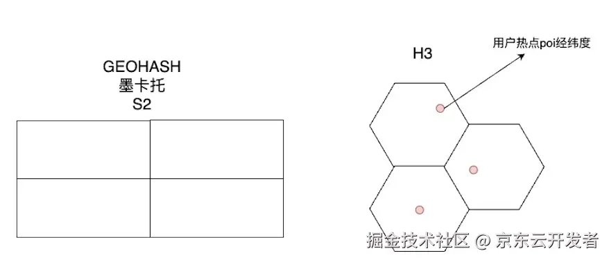 开源的网格grid构建空间索引又很多种,墨卡托、geohash、H3、S2等等,那么我们如何去选择呢?GIS提供的网格接口使用的空间索引是geohash四边形网格,但是为了以防万一,我们通过主站网格中台封装的JMF组件,异构了包含了geohash在内的多种空间索引,目的是全方位覆盖,为了后续的diff提供多种选择,得到最优结果。这里我就挑一种H3作为demo去讲述如何构建的网格。