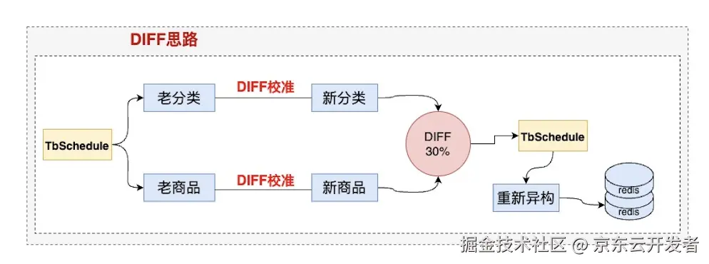 门详DIFF验证,抽选出重点KA门店,定时任务check门店下的分类和商品情况。如果抽查整体DIFF异常率超过30%,我们则会触发新一轮的异构任务。