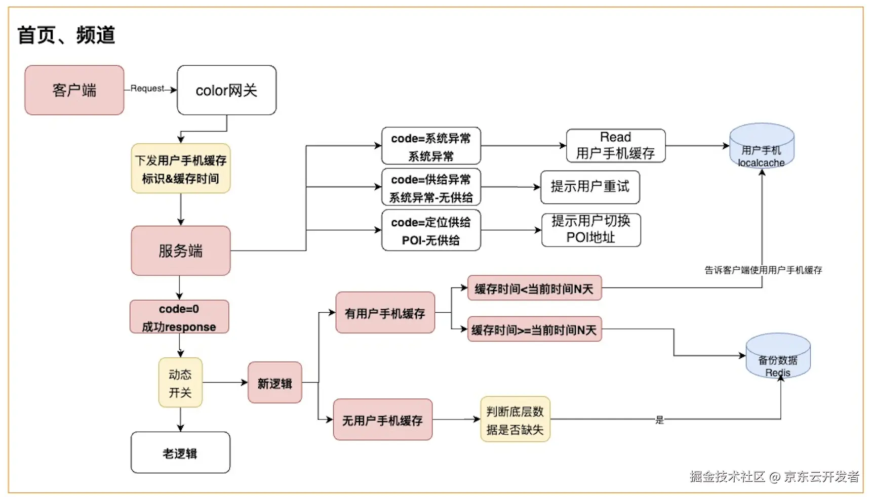 (1)在备份数据的切换流程上,灵活增加了功能开关,在新逻辑的场景下,服务端根据前端传过来的标识和缓存时间,和当前时间进行对比,如果用户的手机在N天内,我们视为有效缓存,则会直接使用客户端缓存,不会使用备份缓存