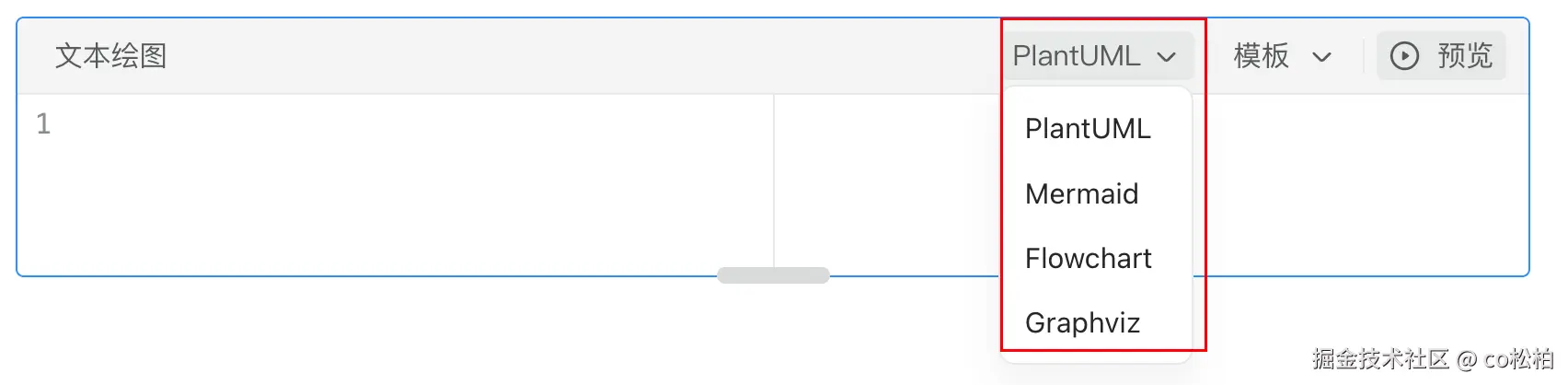 选中之后就会出现一个输入框,在框的右侧可以选择画图的语言: