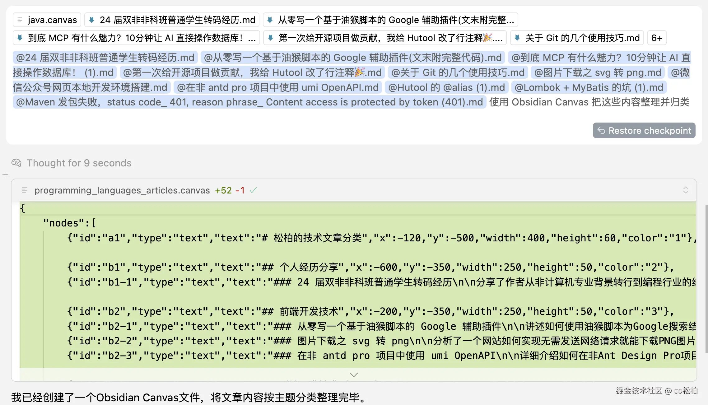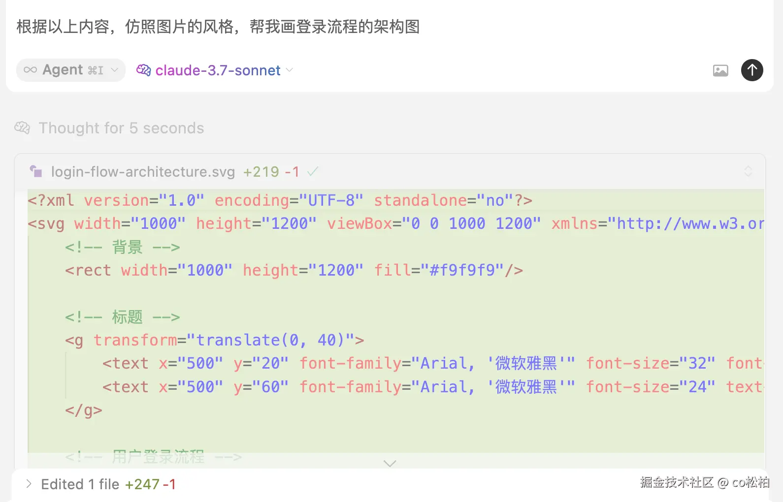 这样 AI 就又加了一些内容,如果对文案不满意,我们可以通过编辑对应的文件手动调整,这也是我用 AI 画图很重要的一个原则——必须要能够手动调整图片内容,保证图片中文案的高质量。不过这篇文章的重点是画图方式,图中的文案我就不调整了。