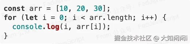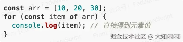 const arr = [10, 20, 30];arr.customProp = "hello";for (let i in arr) {console.log(i, arr[i]); // 会输出 "customProp" "hello"}