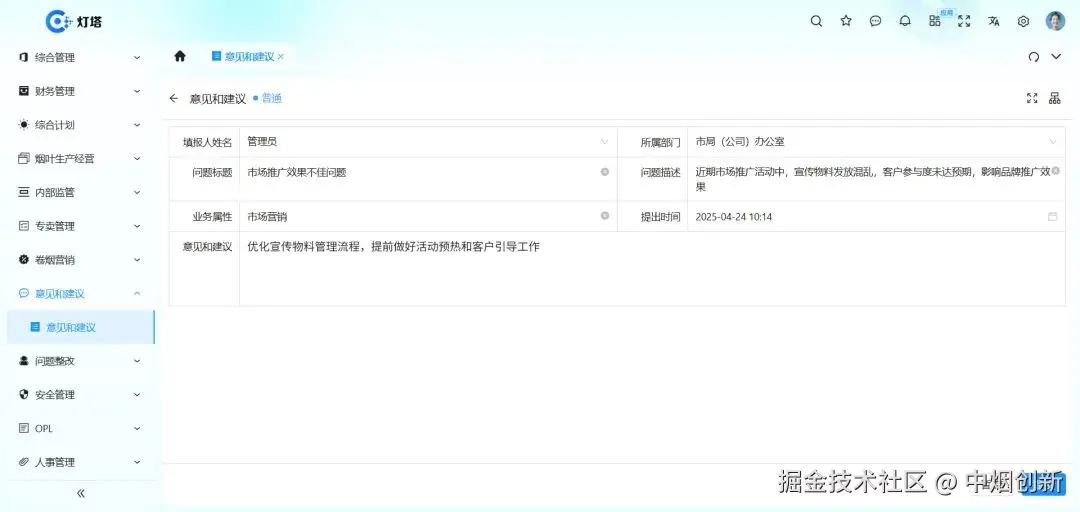 接收来自员工、客户、合作伙伴等不同主体,对企业运营、产品、服务等方面的看法和想法。记录意见和建议的处理进度,从接收、分派到解决,全程跟踪,确保不遗漏。为企业管理层提供多视角信息,辅助制定战略、改进产品服务等决策。