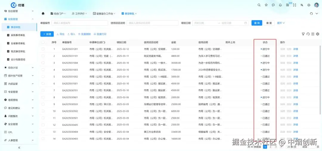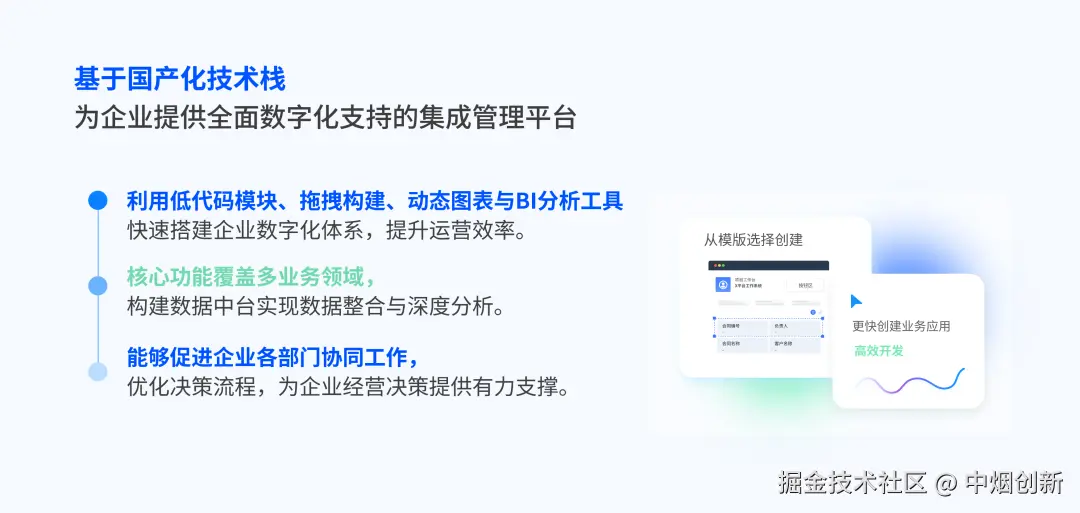 烟草行业涉及大量的用户数据和关键业务流程。信创迁移能够将这些核心资产迁移到国产自主可控的环境中,有效降低因外部技术封锁、数据泄露等风险带来的潜在威胁,确保行业的信息安全和稳定运营。通过信创迁移,烟草公司可以引入国内先进的信息技术和解决方案,实现业务流程的优化和创新。这有助于提高企业的生产效率、管理水平和服务质量,增强市场竞争力,推动行业向数字化、智能化方向发展。企业综合管理系统是北京中烟创新科技有限公司(简称:中烟创新)基于国产化技术栈为企业提供全面数字化支持的集成管理平台。通过低代码模块、拖拽式应用构建、动态图表、BI分析工具等,助力企业快速搭建数字化体系,提升运营效率。 核心功能涵盖企业OA流程、投资采购、财务管理、人事管理、项目管理、安全管理、意见建议、商业智能、人工智能等,构建企业数据中台,实现数据集中处理和深度分析,促进部门协同,优化决策流程,旨在为企业经营决策提供支撑。