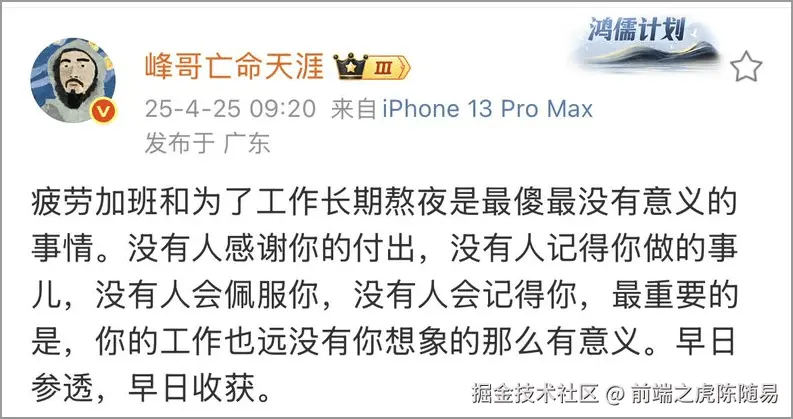 刚好看到一个新鲜话题,峰哥说的,虽然我对峰哥不太了解,但我经常听群友说起他,图中观点我是比较认同的。