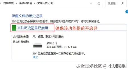 恢复回收站已删除东西方案3:文件历史记录功能