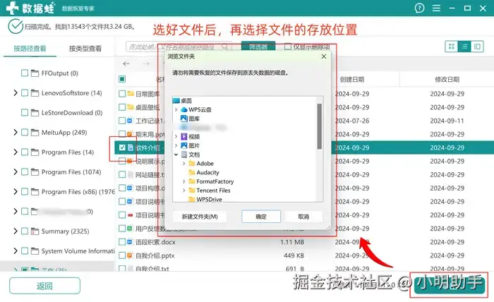步骤3: 勾选目标文件后,点击“导出”,在弹窗上选择目标文件在电脑存放的位置。