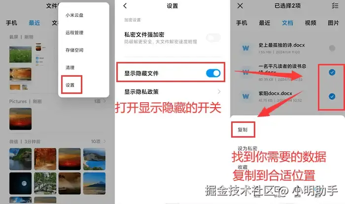 注意:不同手机的文件隐藏机制可能存在差异,在恢复之前先充分了解你手机的操作方法。