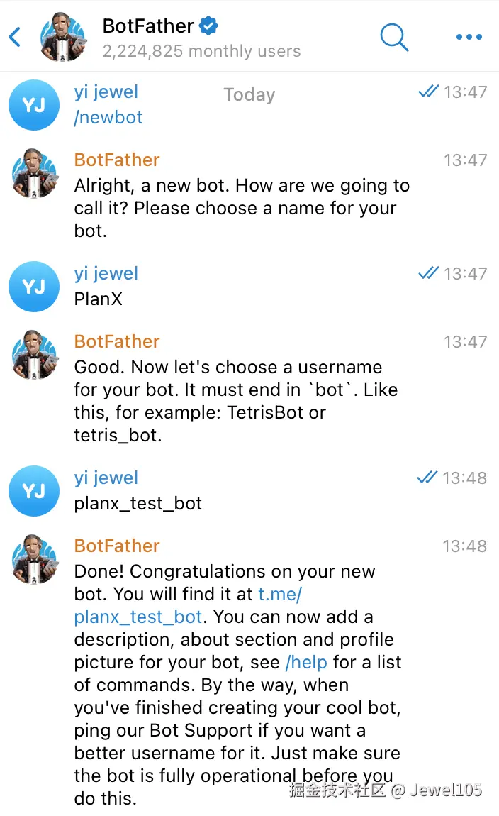 2.1.1. 在BotFather中输入/newapp,绑定机器人