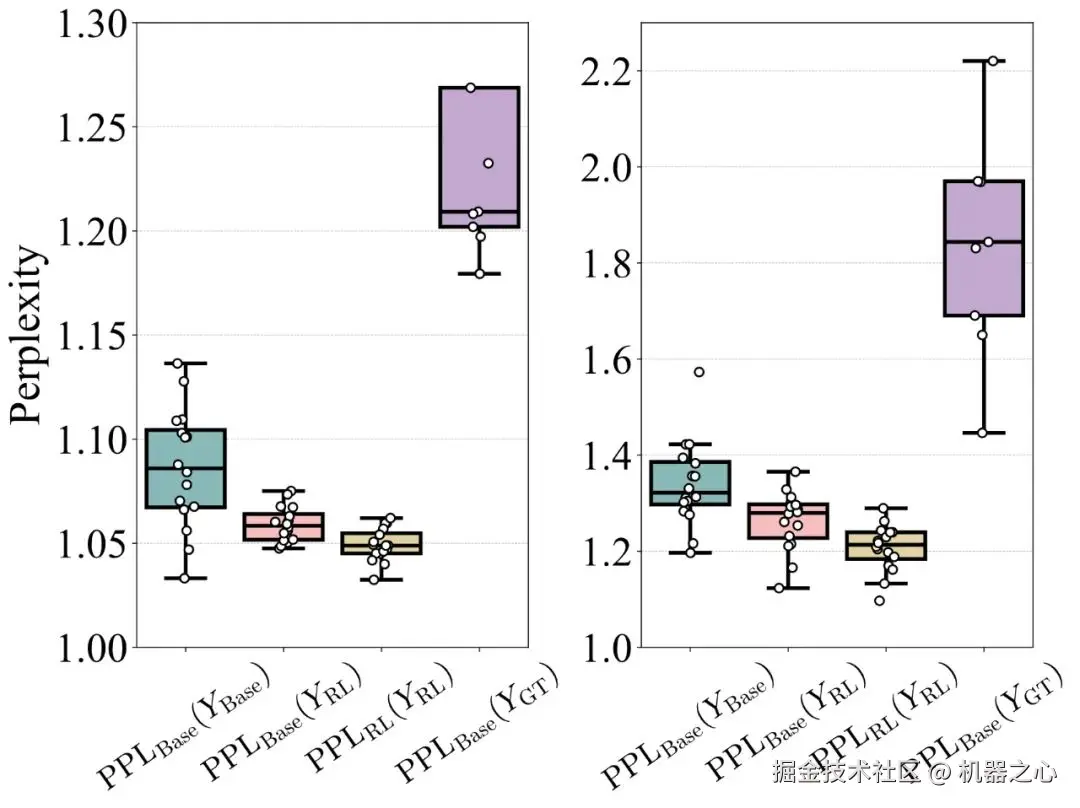 更进一步的困惑度(perplexity)分析表明,RLVR 训练模型生成的推理路径本就存在于基础模型的输出分布中,这意味着 RLVR 只是让模型更偏向高奖励解决方案,而非创造新的推理能力。然而,这种对奖励路径的聚焦削弱了模型的探索能力,限制了其在大规模采样时对可解问题的覆盖范围。这些发现说明 RLVR 并未从根本上突破基础模型的推理能力,而是以牺牲解决问题的多样性为代价来优化现有路径。