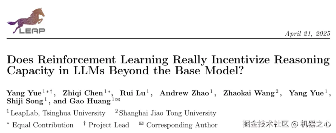 论文标题:Does Reinforcement Learning Really Incentivize Reasoning Capacity in LLMs Beyond the Base Model?