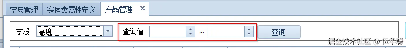 通过下拉列表的方式选择不同的字段进行查询,如果是数值型或者日期,我们可以根据不同类型来创建输入控件组,来实现区间数值或者日期的输入。