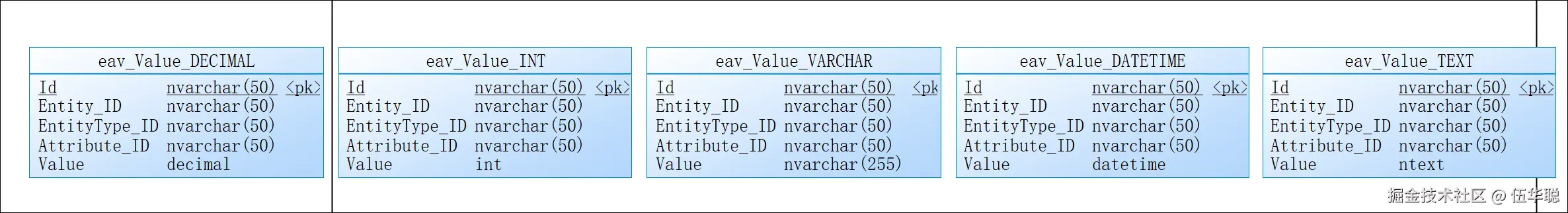 EAV模型(实体-属性-值)的处理,主要是用来解决动态定义业务表和数据存储和查询的解决方案,我们可以通过动态定义表和字段信息的方式,实现低代码甚至零代码的设计方案。