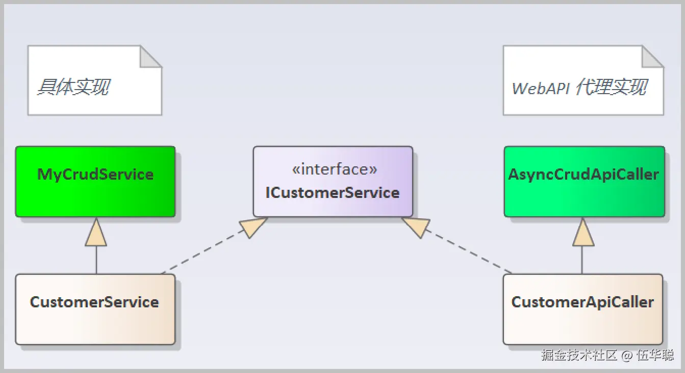 而对应Web API的代理调用类,那么为了极大的重用常规的接口处理,我们需要类似的继承关系。