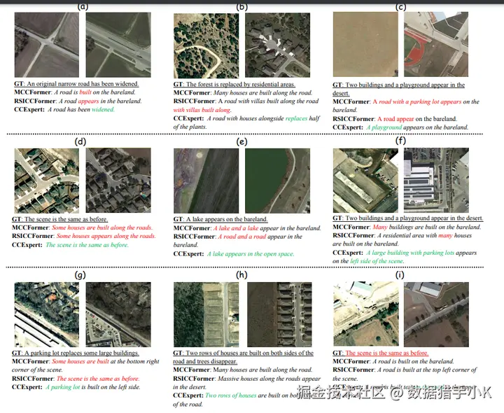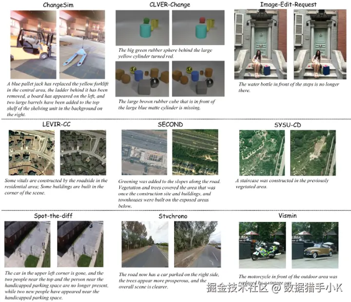 高质量、大规模、多样化,涵盖多种变化类型和场景,为遥感图像变化描述任务提供了丰富的数据支持。