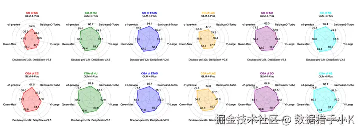 六个主题的不同模型的结果(CO 和 CGA 指标)。