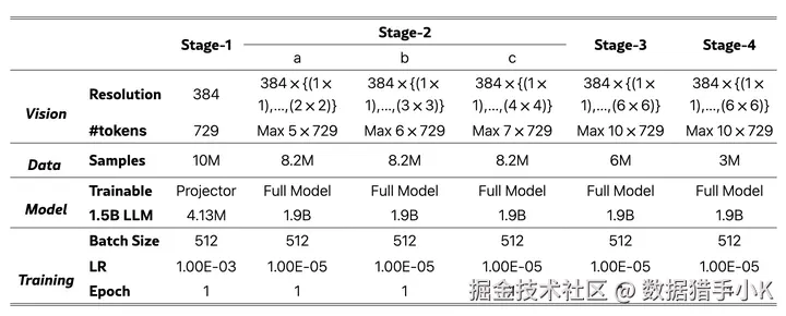 用于跨各个阶段训练 Aquila-VL-2B 的配置。