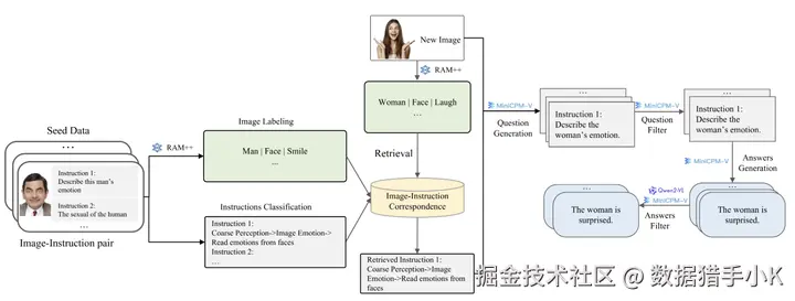 2024-10-15,由北京智源人工智能研究院、北京交通大学、北京邮电大学等机构联合创建了Infinity-MM,一个包含4000万个样本的大规模多模态指令数据集。这个数据集通过严格的质量过滤和去重,显著提升了开源模型与闭源模型性能的差距,为开源视觉语言模型的发展带来了重要意义。