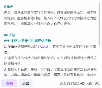 😄 接着整个 大模型节点,写提示词分析和生成报告了,随便写下,然后 AI优化: